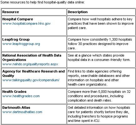 Although online tools make hospital comparisons more thorough than ever, experts say other factors matter too, including such abstractions as reputation...reputation often boils down to word of mouth. Pay particular attention to recommendations, or warnings, from people who work at hospitals you're considering, experts say.